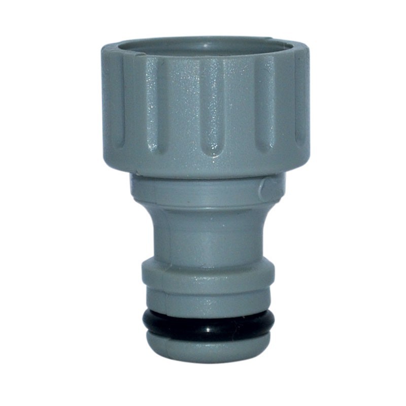 Nez de robinet plastique, femelle 20x27 (3/4''), matière : Corps ABS, joint torique caoutchouc, dimensions produit (H x L x P en cm) : 3,7 x 3,2 x 3,2, poids (g): 9