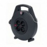 Boitier moulé en matière isolante anti-chocs, poignée ergonomique avec crochet métallique escamotable, 4 prises 2P+T 16 A/230 V, protection enfants, disjoncteur thermique, puissance max sous 230 V : 2300 W, câble : H05VV-F 3G1,0, coloris : Noir/Noir.