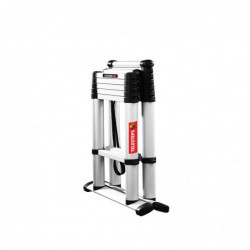 Échelle 2 en 1 : escabeau/échelle simple, fonctionne comme un escabeau indépendant ou se transforme facilement en une échelle pour être adossée contre un mur, possède deux barreaux supplémentaires en guise d'appui pour les jambes, conçue en tube aluminium résistant lui conférant une bonne stabilité, embout de pieds surélevé (24 mm) rendant son utilisation possible sur des surfaces inégales, dimensions repliées : 73 x 69 cm, largeur marches : 90 mm. Conforme à la norme EN 131.