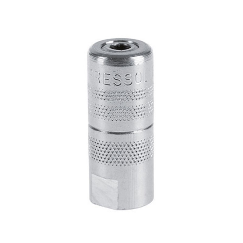 En acier zingué, pour graisseurs hydrauliques, équipé d'un clapet anti-retour, raccordement : M 10 x 1 F, modèle 4 mors usinés.