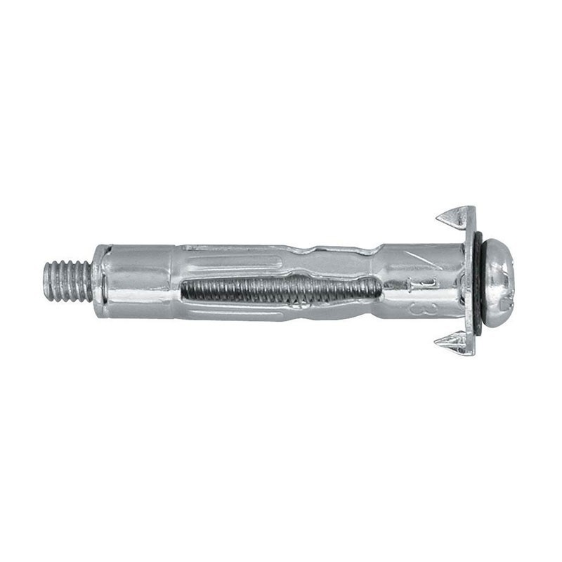 Cheville métallique zinguée avec vis métrique opur murs creux, plaques de plâtre ou panneaux d'aggloméré, installation à l'aide d'un simple tournisevis ou la pince de pose, corps de cheville en une pièce est doté d'un taraudage intégré pour une fxation plus solide, branches d'expansion conçues pour maximiser la capacité de charge dans la plaque de plâtre d'épaisseur simple ou double, ergots anti-rotatifs intégrés, fourni avec un écrou, applications : étagères et accessoires fixés sur la plaque de plâtre, radiateurs et placards sur la plauqe de plâtre de double épaisseur et avec carrelage,, cadres pour images, lampadaires, sèche-serviettes, tringles à rideaux, mirroirs.