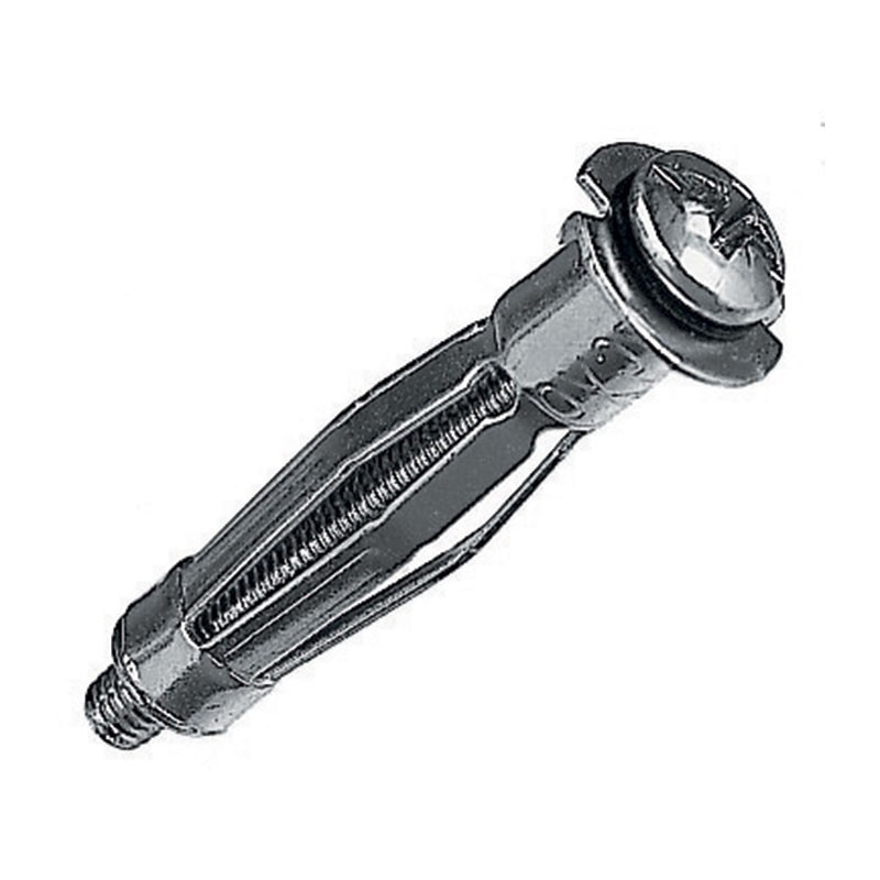 Corps de cheville en une pièce taraudage integré pour une fixation plus solide, branches d'expansion conçus pour maximiser la capacité de charge dans la plaque de plâtre d'épaisseur simple ou double, large surface de contact des branches éxpansées avec le support, ergots anti-rotatifs intégrés pour une installation en toute sécurité, les pièces fixées peuvent être démontées et remplacées en utilisant la même vis, fourni avec un écrou.