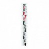 Mire télescopique composée de 4 éléments d'1 mètre, blocage de chaque élément par bouton poussoir, division topographique E droite et mm au dos, graduation protégée par oxydation anodique.