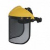 Porte-visière avec protection frontale + visière grillagée avec bord plastique, visière noire, taille ajustable. Conforme à la norme EN 1731.