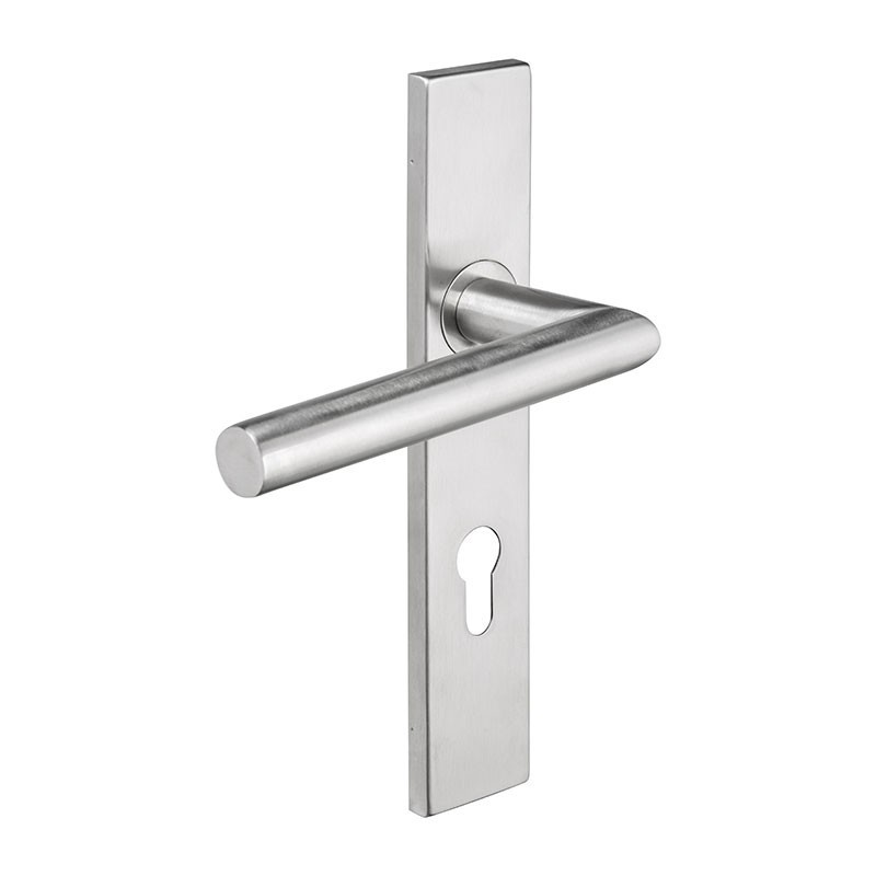 ENS POIGNEE INOX 304 ENT 195 MM A BOUT CARRE + 1 PLAQUE VIS INV BEQ ANGLE VIF
